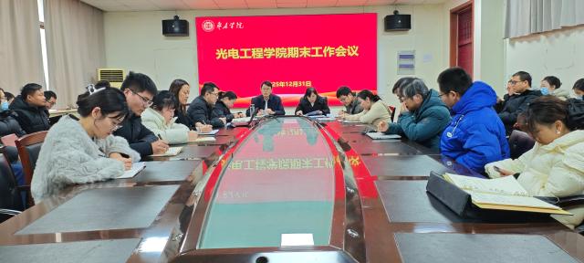 为全面总结本学期工作成果,统筹部署期末及新学期重点任务,12月31日下午,光电工程学院在学院会议室召开期末工作会议。学院领导班子成员及全体教职工参加会议,会议由学院党委书记李伟主持。会上,院长梁兰菊全面总结了学院本学期在教学、科研、学科建设、学生培养、人才队伍建设等方面取得的丰硕成果。她指出,学院在教学、科研、人才引进以及学生竞赛等方面均取得优异成果,这些成果的取得,离不开学院全体师生的共同努力,...