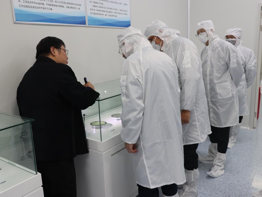 会后,高峰一行在曹学蕾等人的陪同下参观了产品展厅。李伟、梁兰菊及光电学院教师代表就合作细节等问题与核心光电科技有限公司相关负责人开展了充分的讨论。