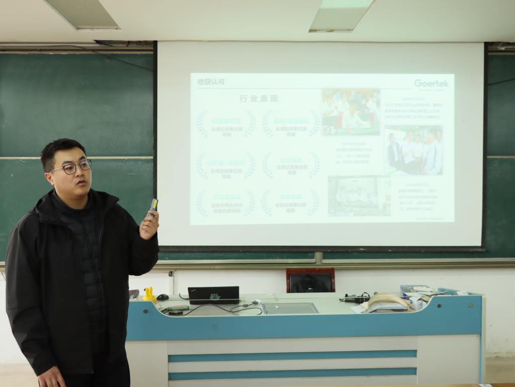 招聘会上,歌尔集团招聘负责人仇志全结合智能化机械零部件领域的深度研发与精密制造,全面介绍了公司的发展历程、核心业务、技术实力以及人才需求。此次招聘,公司面向2025届毕业生,提供研发、生产、销售和管理等多领域就业岗位,仇志全也针对毕业生关注的技术路径、职业发展、薪酬福利等问题做了详尽的解答。