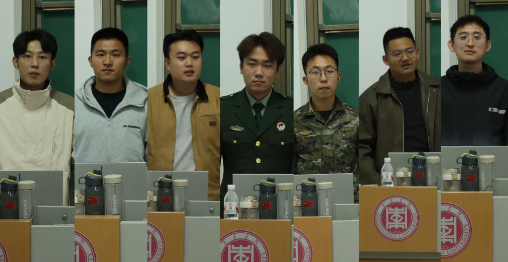 七位曾分别服役于武警、陆军、空军及海军陆战队的退役学生代表——高慕阳、孙健、张宸旗、张瀛瀚、褚云飞、郝子健、付永俐,依次进行宣讲。讲述从校园学子到军营战士的转变之路,分享在部队大熔炉中淬炼成钢、破茧成蝶的成长历程。以亲身经历号召广大同学,把最美的青春年华奉献给祖国的强军事业。