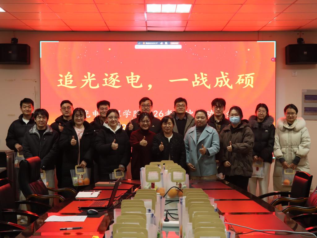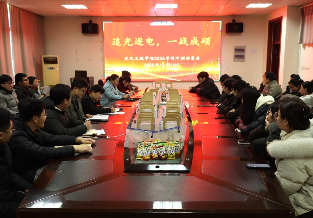 为进一步帮助光电学子缓解备考压力、坚定迎考信心,12月16日下午,光电工程学院在初教楼511会议室召开“追光逐电,一战成硕”--2026届考研冲刺动员会。会议采取“线上+线下”同步方式进行,学院党政领导、毕业班班主任、辅导员及2026届考研学生参加。会议由光电工程学院党委副书记申晨主持。