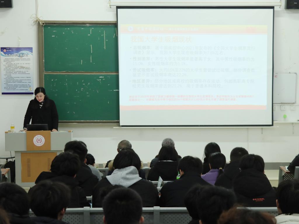 讲座尾声,学院组织开展简短的控烟知识互动环节,通过针对性的问题问答帮助学生巩固所学内容,强化知识记忆。此次活动以专业讲座为核心载体,将控烟知识普及与健康理念培育有机结合,有效强化了学生的控烟意识与责任担当,为构建清新健康、文明和谐的校园环境奠定了坚实基础。