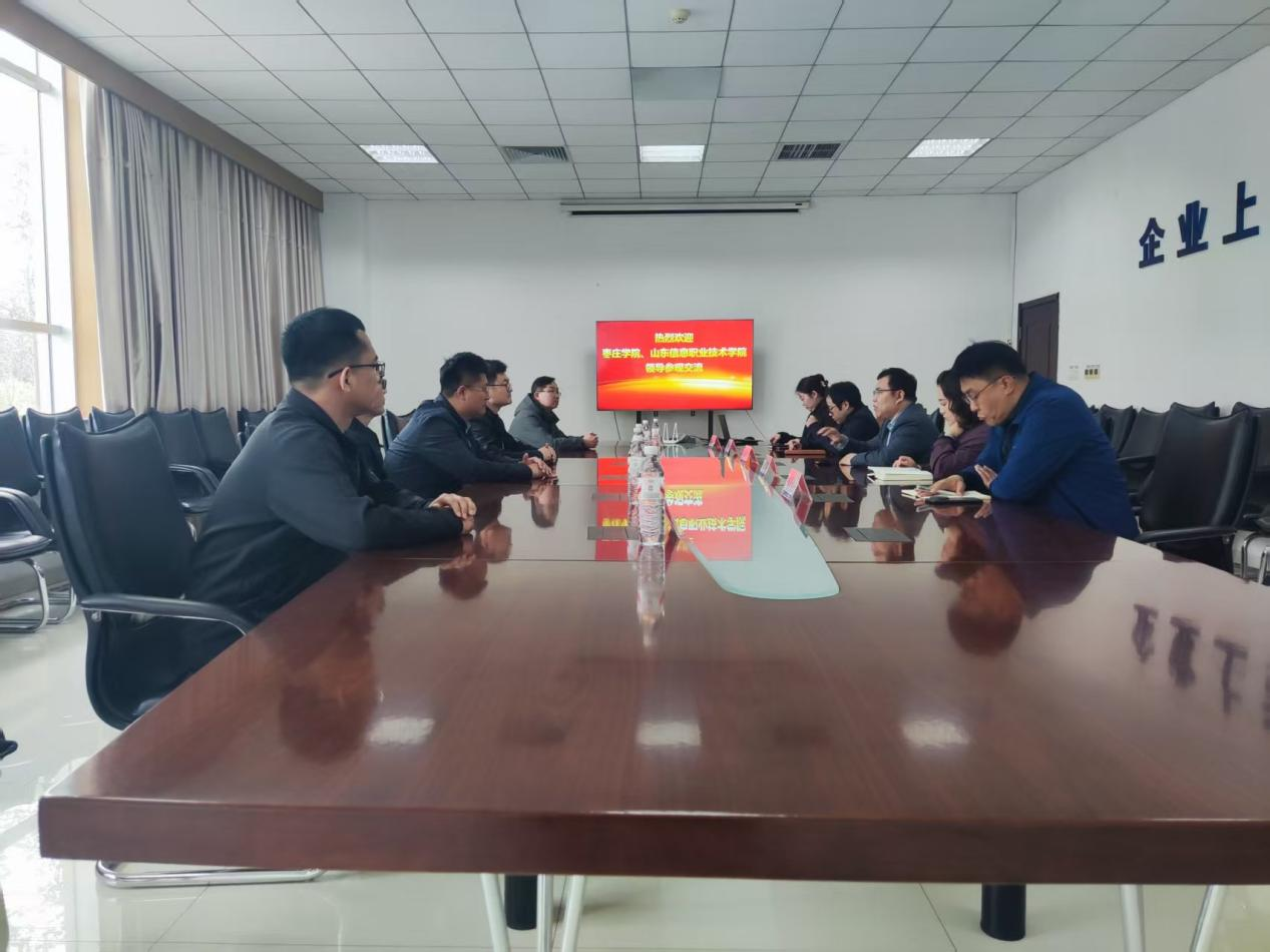 在浪潮华光光电子股份有限公司,公司董事长闫宝华接待了徐伟尧一行,详细介绍了新一代高清显示芯片、功率器件封装自动化生产线等核心技术,并分享了企业在智能制造、绿色生产等领域的实践经验。座谈会上,徐伟尧介绍了学校的发展历程、学科特色及人才培养成果,希望双方能建立常态化合作机制,在实习基地建设、专项人才培养、科研项目等方面开展全方位合作。