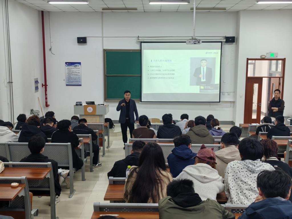活动现场,青岛英谷教育科技股份有限公司负责人申加峰详细介绍了英谷教育的发展概况、核心岗位需求及完善的实训就业保障体系,针对光电专业学子,重点解读了岗位适配标准、职业发展规划及成长路径。交流环节中,毕业生紧扣岗位细节、发展前景等核心问题,与企业负责人深度沟通,部分学子最终与企业达成初步就业意向。