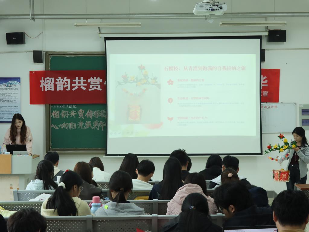 为传承中华优秀传统文化,深入推进心理健康教育工作,将地域文化与心理育人有机融合,引导学生在艺术创作中舒缓情绪、涵养心灵。4月22日,光电工程学院在市中校区初教楼111教室成功举办“榴韵共赏”—石榴艺术文化创意展选拔活动。